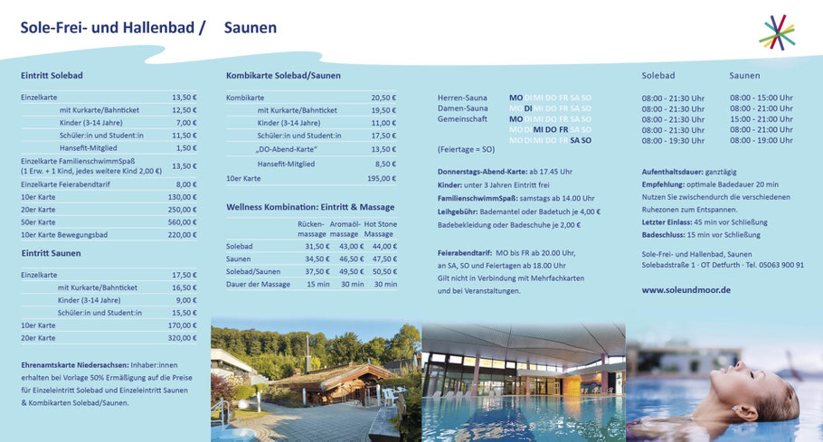 50% Ermäßigung auf die Preise für Einzeleintritt Solebad, Einzeleintritt Saunen & Kombikarte Solebad/Saunen gewähren zu dürfen.